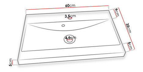 Se caracterizează printr-o împărțire interesantă în rafturi și sertare. Dulapul suspendat înalt are 3 rafturi, dintre care două sunt închise. Are 2 sertare, unul mai mic și unul mai mare, adânc. Al doilea dulap lateral este puțin mai jos și este format doar din sertare. Două adânci și unul pentru articole mici și cosmetice. Un alt element al setului este dulapul pentru chiuvetă, care este de asemenea suspendat. Conține un dulap înalt. Poate pentru depozitarea prosoapelor sau a produselor de curățat. Oglinda nu poate lipsi în baie, astfel setul include o oglindă cu dimensiunile de 60 cm x 50 cm. Este plasat pe o placă laminată cu un raft îngust.