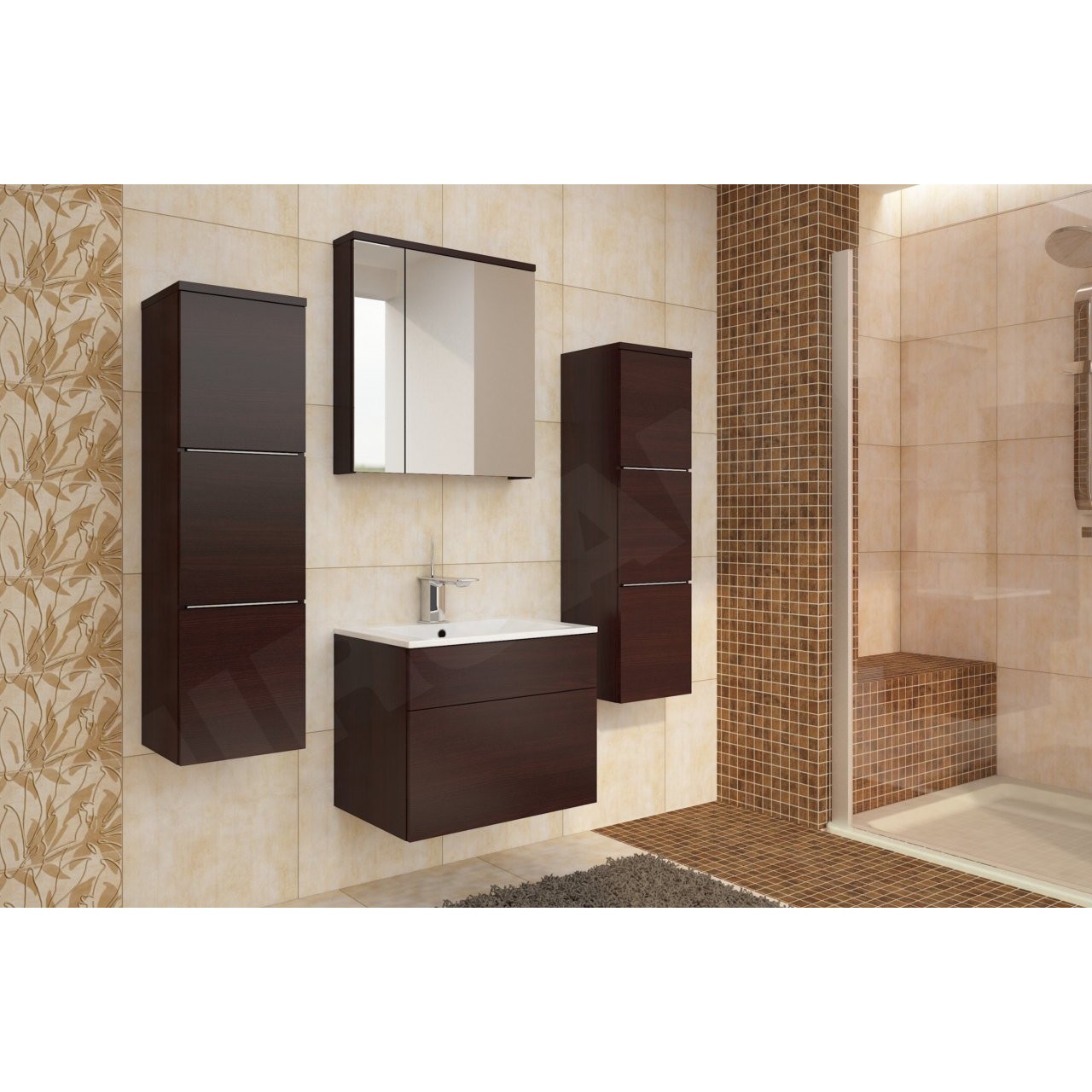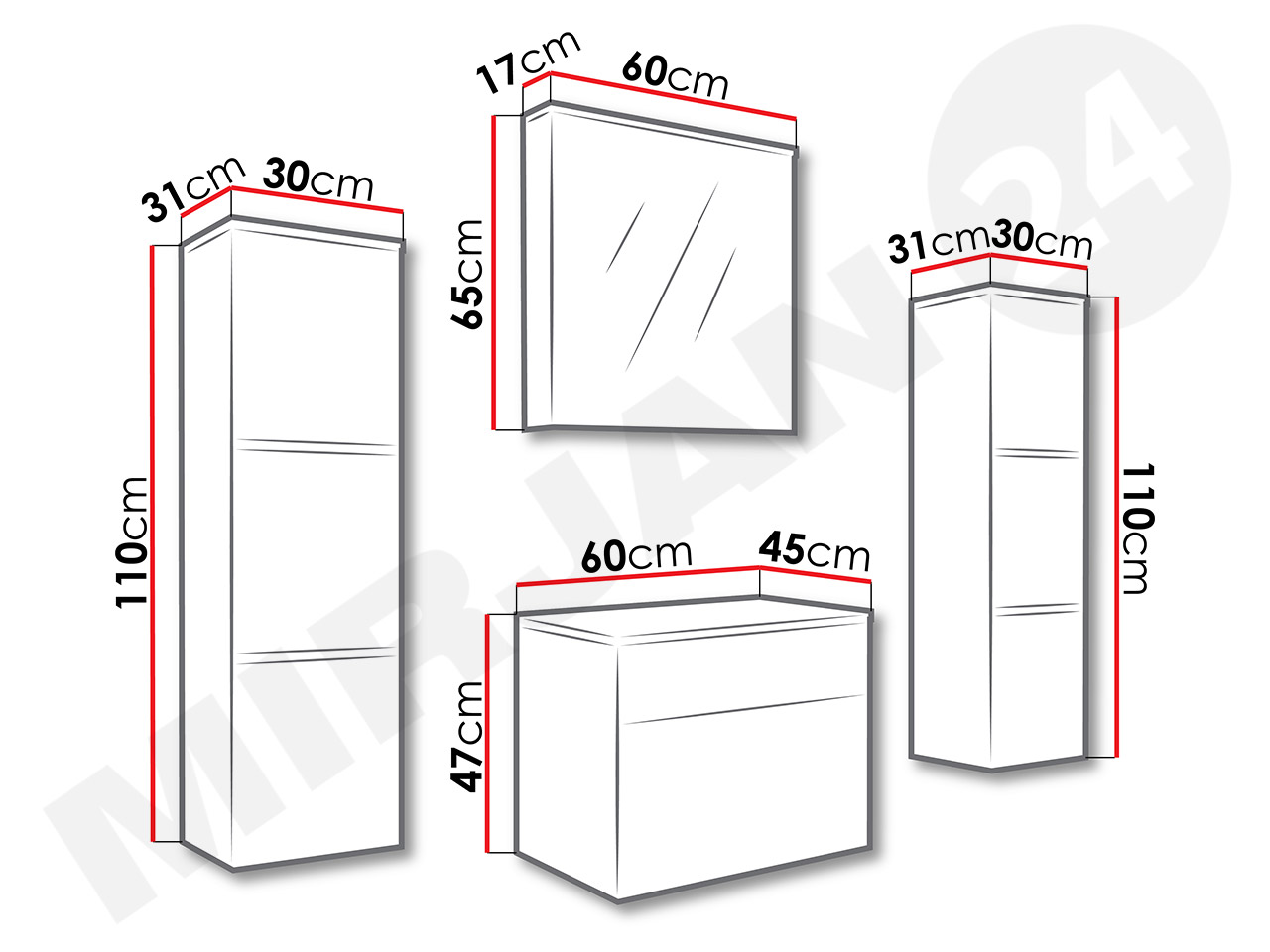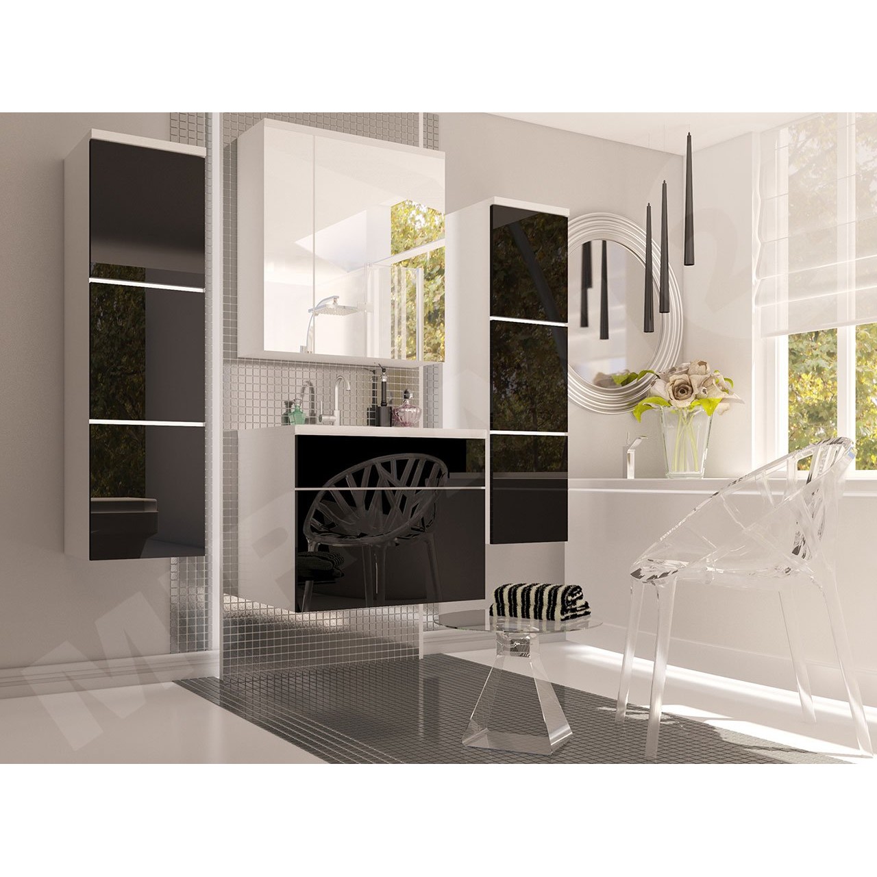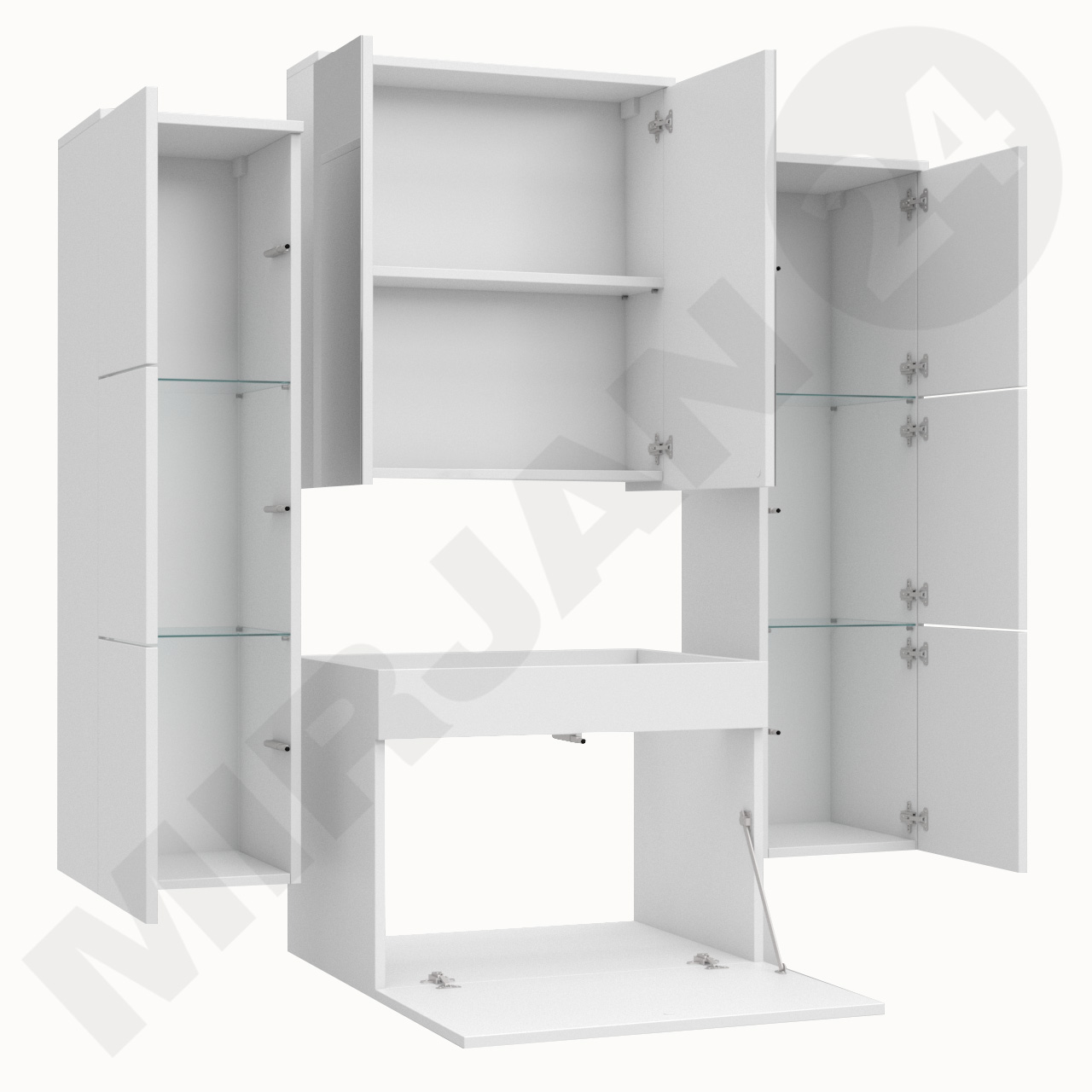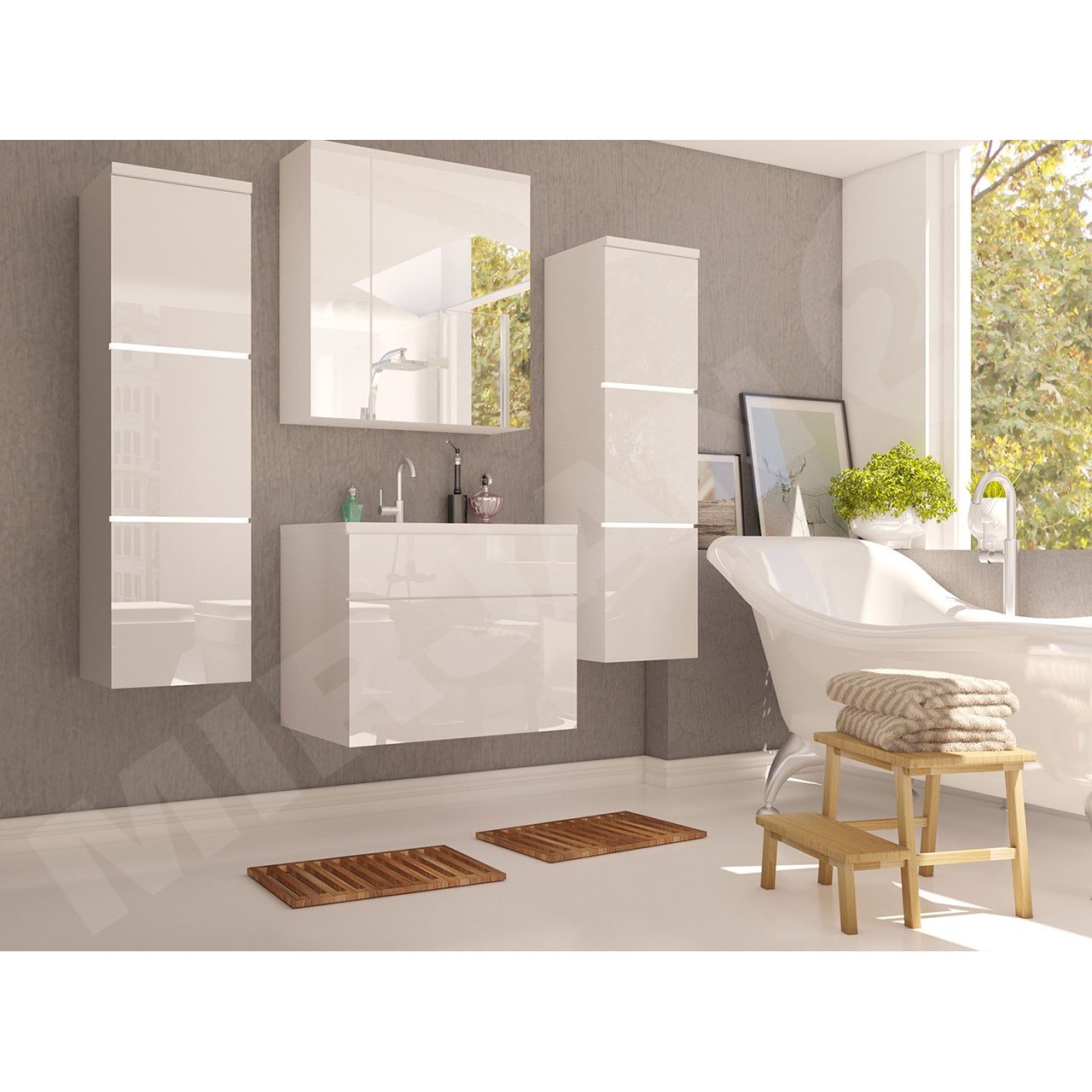 Mobilier baie Mendana (Alb + lucios Alb) (cu chiuvetă și sifon) (cu iluminat LED)