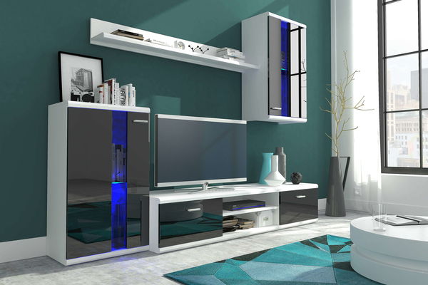 - Mobilier camera de zi Lisa (Alb + Negru lucios)