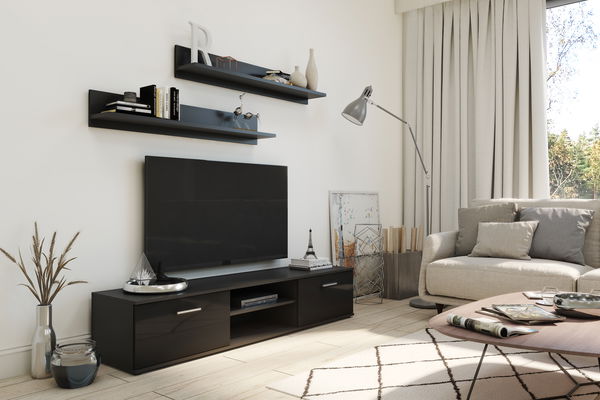 - Mobilier cameră de zi Palano (Negru + negru lucios)
