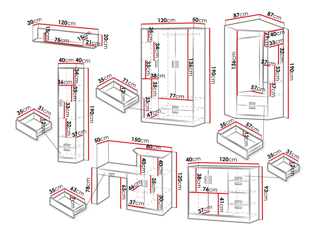 Placă laminată de 16 mm, margine ABS de 0,5 mm, ghidaje cu bile în sertare, mânere din plastic