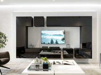 Mobilier living Pont (Stejar artisan + Negru mat)