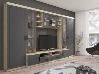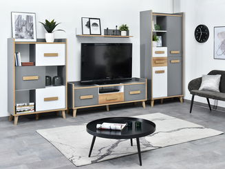 Mobilierul pentru living este format din mai multe elemente de sine stătătoare sau piese individuale de mobilier atașate. De obicei acestea sunt mese TV, vitrine, rafturi și dulapuri mai mici. Stilul minimalist este reprezentat de un set de masă TV cu picioare mai înalte, un raft și maximum două rafturi înguste suspendate sau vitrine. Daca doriți mai mult spatiu de depozitare, alege din gama de pereti de lux pentru living din lemn masiv. Combinația dintre un cadru din lemn și o ușă cu un finisaj lucios este de asemenea populară.