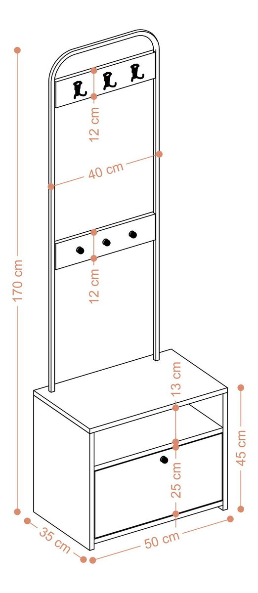 lățime: 50 cm înălțime: 170 cm adâncime: 35 cm