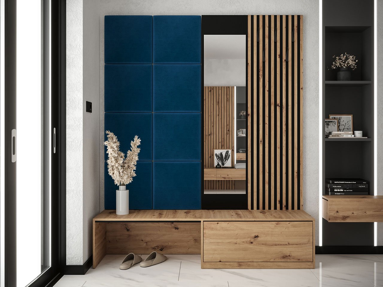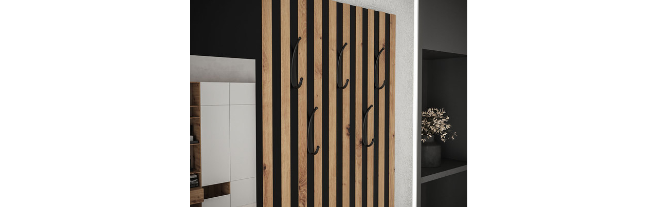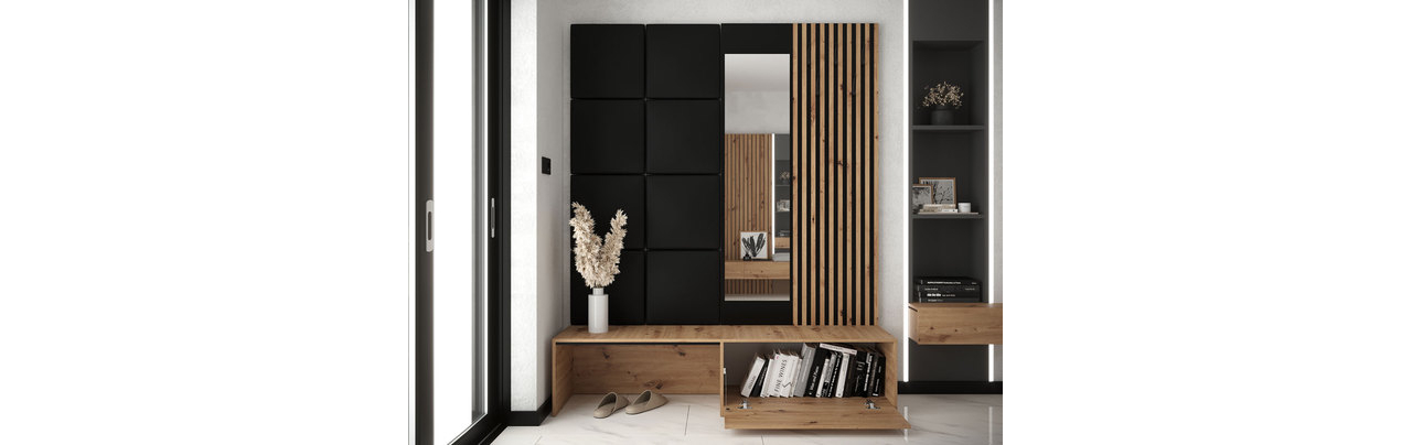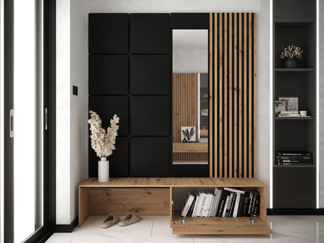 Mobilier hol Anrolat I (Stejar artisan + Negru + Roz) (cu oglindă)