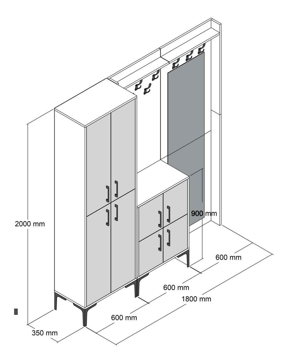 grosime: 18 mm, picior metalic mâner metalic cuier metalic lățime: 180 cm, înălțime: 200 cm, adâncime: 35 cm