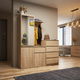 Mobilierul Enteruno facilitează accesul rapid la obiectele de zi cu zi și menține ordinea în hol printr-un spațiu organizat pentru paltoane, genți și încălțăminte. Setul combină funcționalitatea unui cuier, dulap pentru haine, spațiu de depozitare și oglindă într-un singur ansamblu eficient, optim pentru utilizarea spațiului fără a sacrifica estetica.