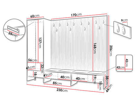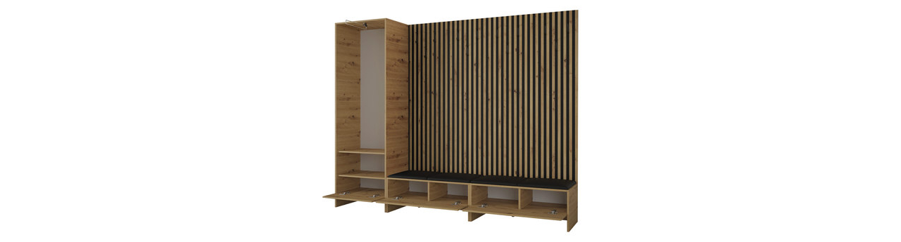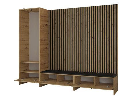 Mobilier hol Esmaldos VI (Stejar artisan + Negru + Roz)