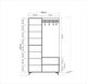 grosime: 18 mm, picioare crap, mânere metalice, lățime: 100 cm, înălțime: 190 cm, adâncime: 36 cm, înălțime raft: 20,5 cm, lățime raft dreapta: 40,8 m înălțime picioare: 14,5 cm