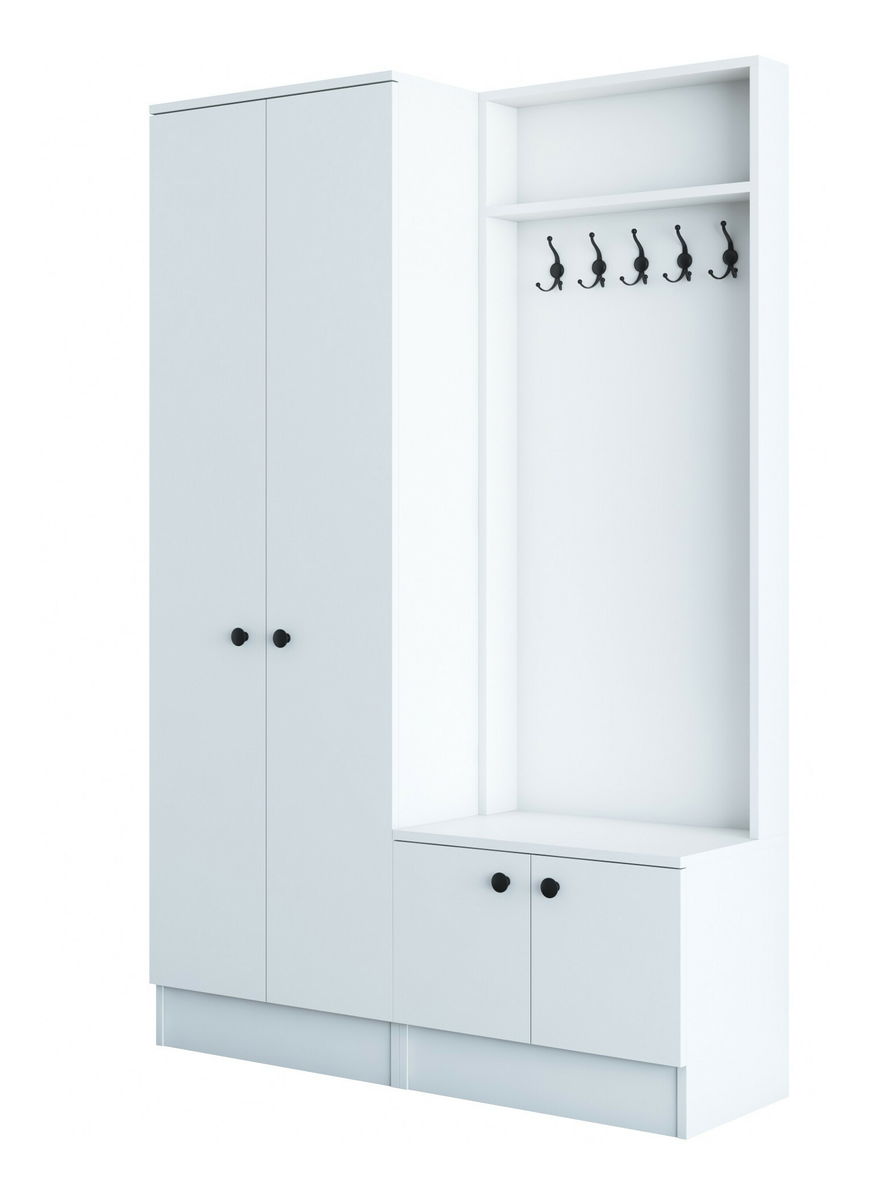 Mobilierul pentru hol Maui M5, realizat într-un alb mat elegant, este soluția ideală pentru organizarea spațiului de la intrarea în locuință. Cu dimensiuni compacte – înălțime 182 cm, lățime 119 cm și adâncime 37 cm – oferă un echilibru perfect între funcționalitate și design.