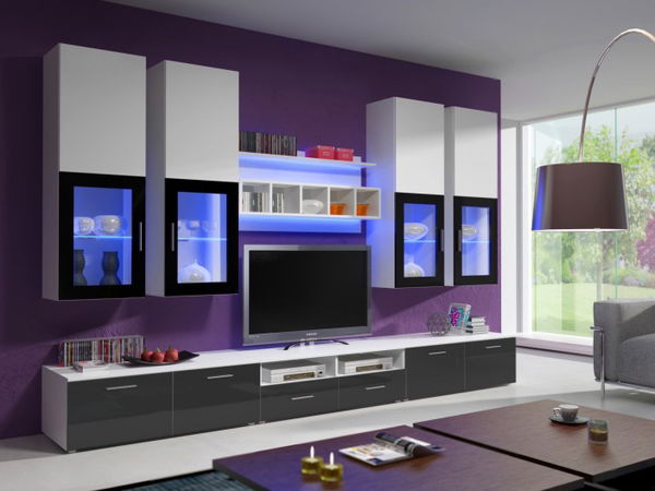 Mobilier living Aston 1 (Alb + gri) (cu iluminat)