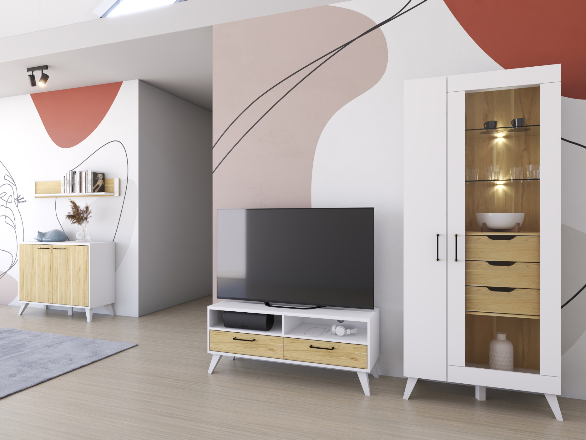 Vitrină Barilus 12 (nuc american byant + alb)