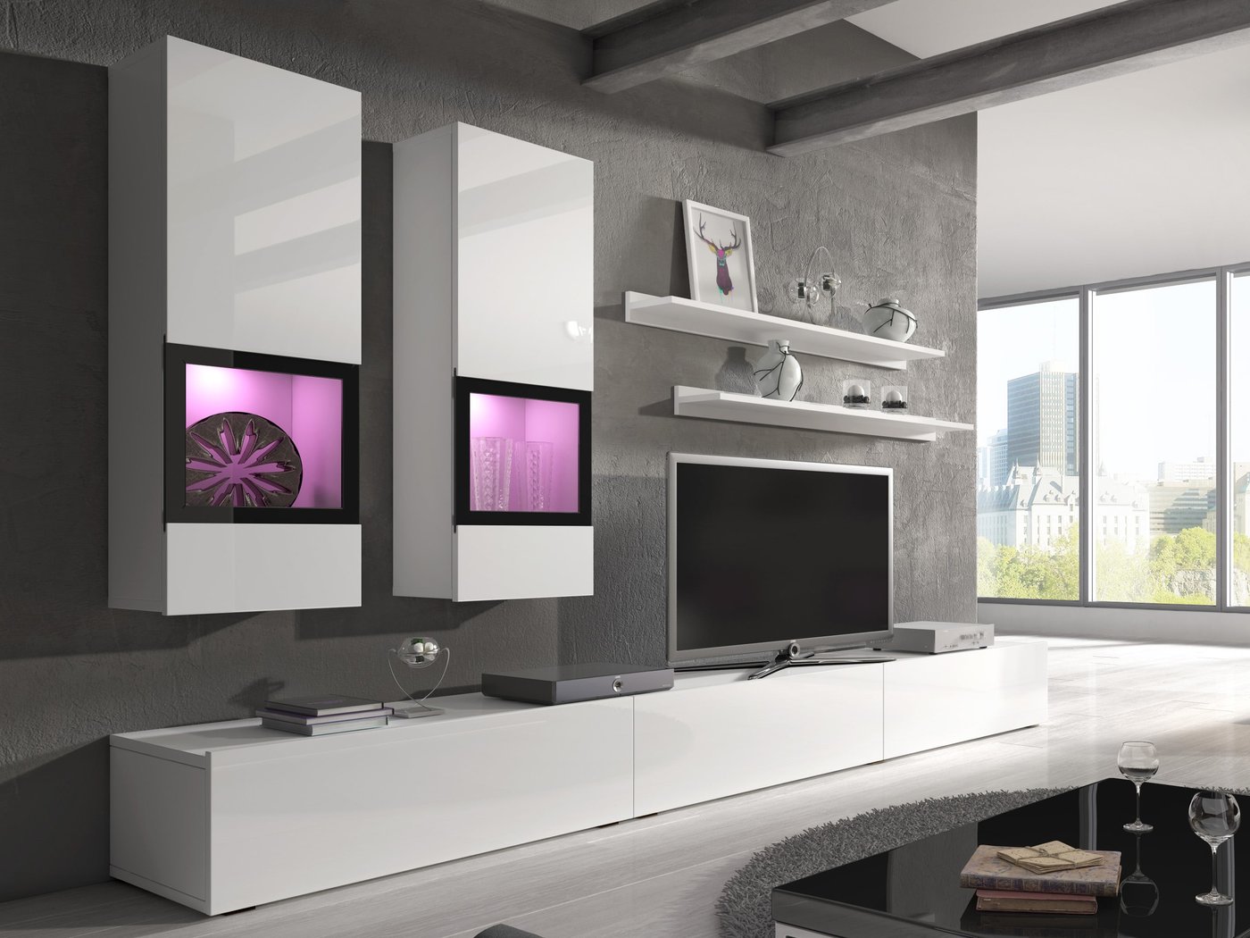 Mobilier living Barly Typ 10 (alb + alb lucios) (fără iluminat) *vânzare stoc