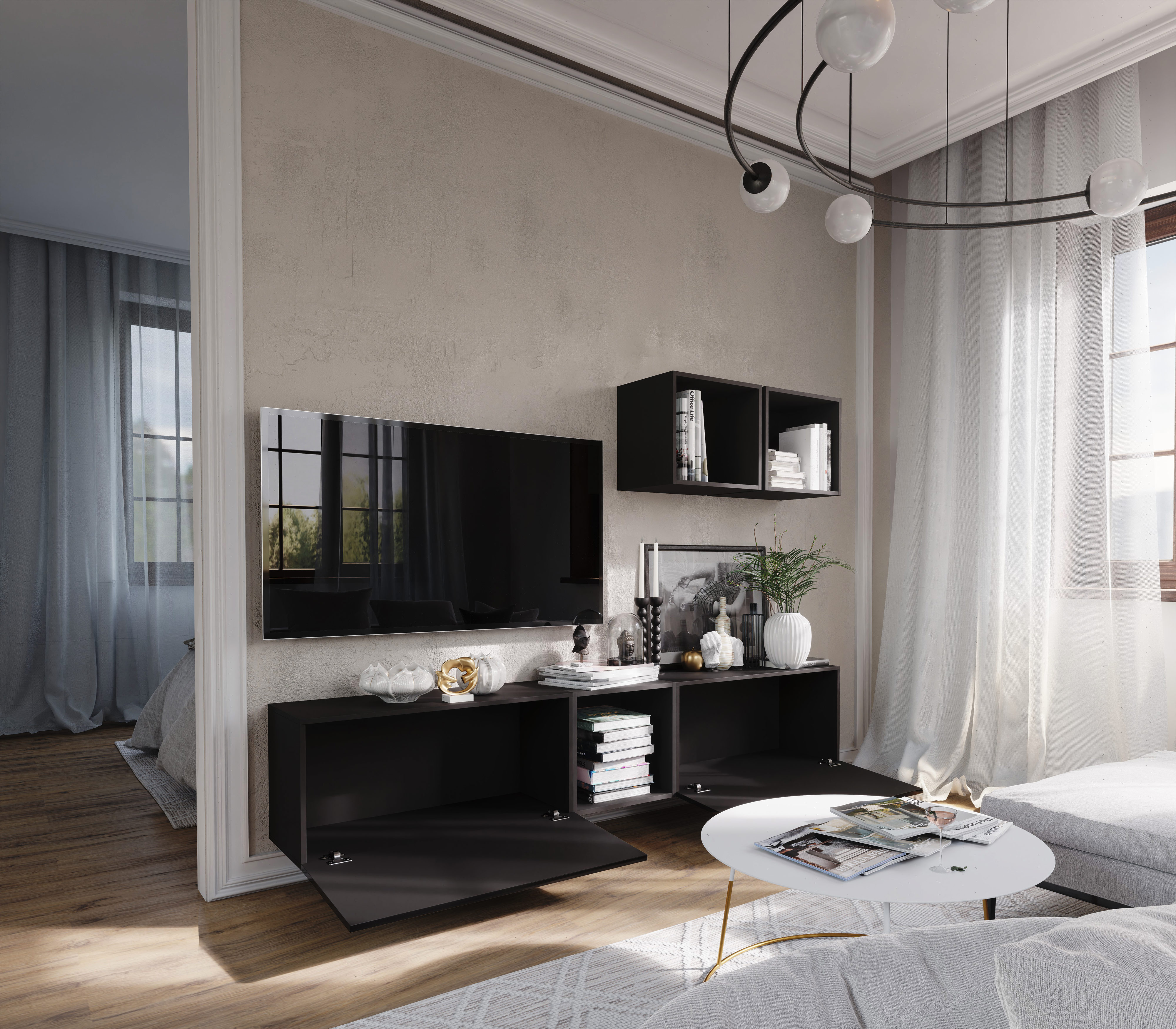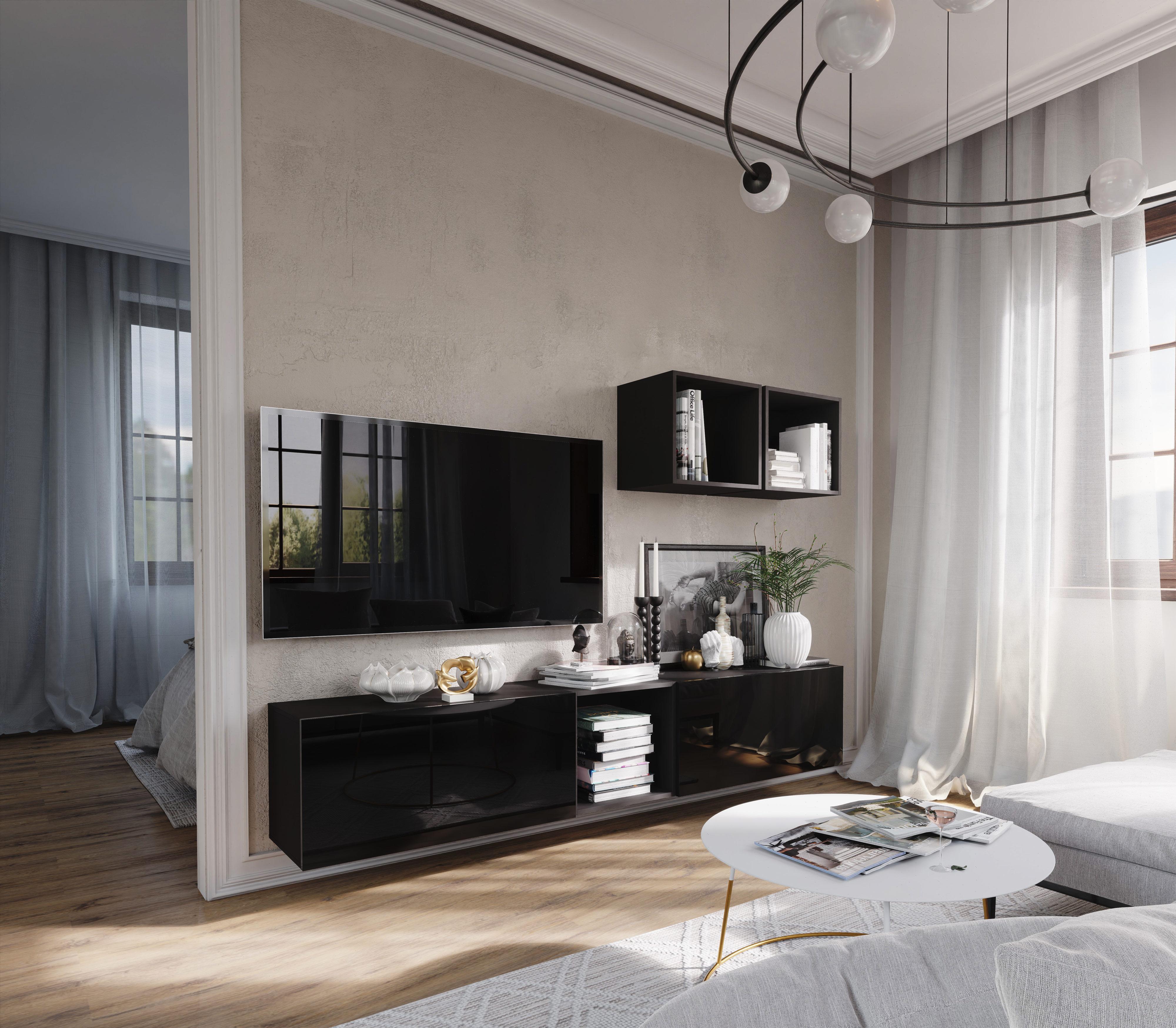 Mobilier living Berny 22 (negru + negru lucios)