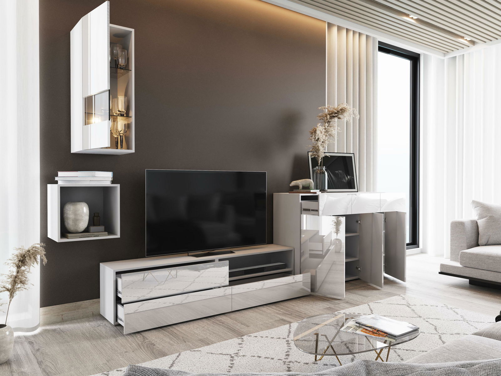 Mobilier living Berny 51 (alb + Alb lucios)