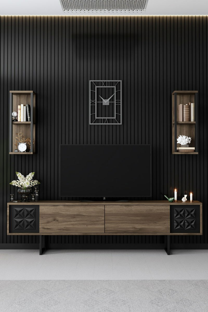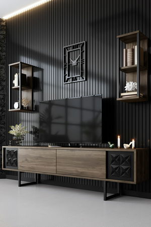 Mobilierul de living Buon 1, realizat din nuc și finisat în negru, este alegerea ideală pentru un spațiu modern, rafinat și funcțional. Designul său contemporan, combinând căldura lemnului de nuc cu accentele grafice negre, adaugă un plus de caracter oricărui interior, fie că este vorba de un living minimalist, industrial sau urban.