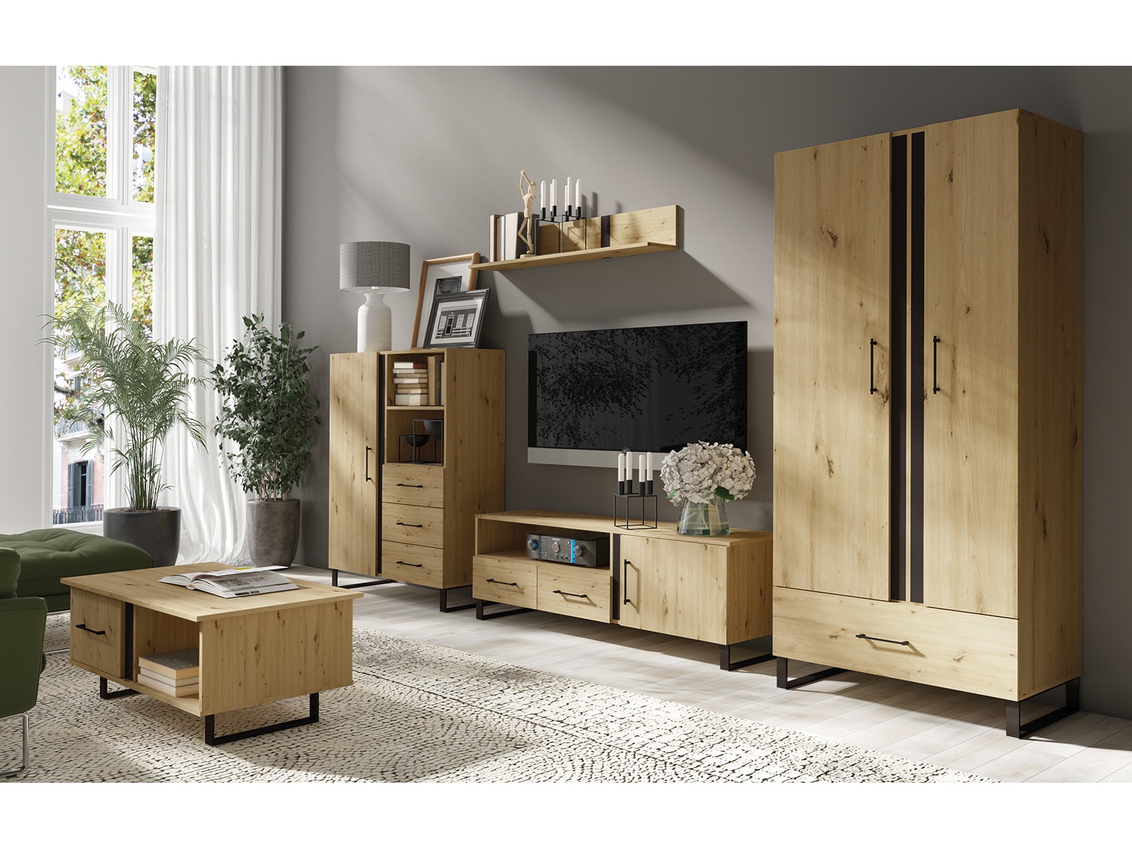 Mobilier living Filippa 1 (Stejar artisan + Negru)
