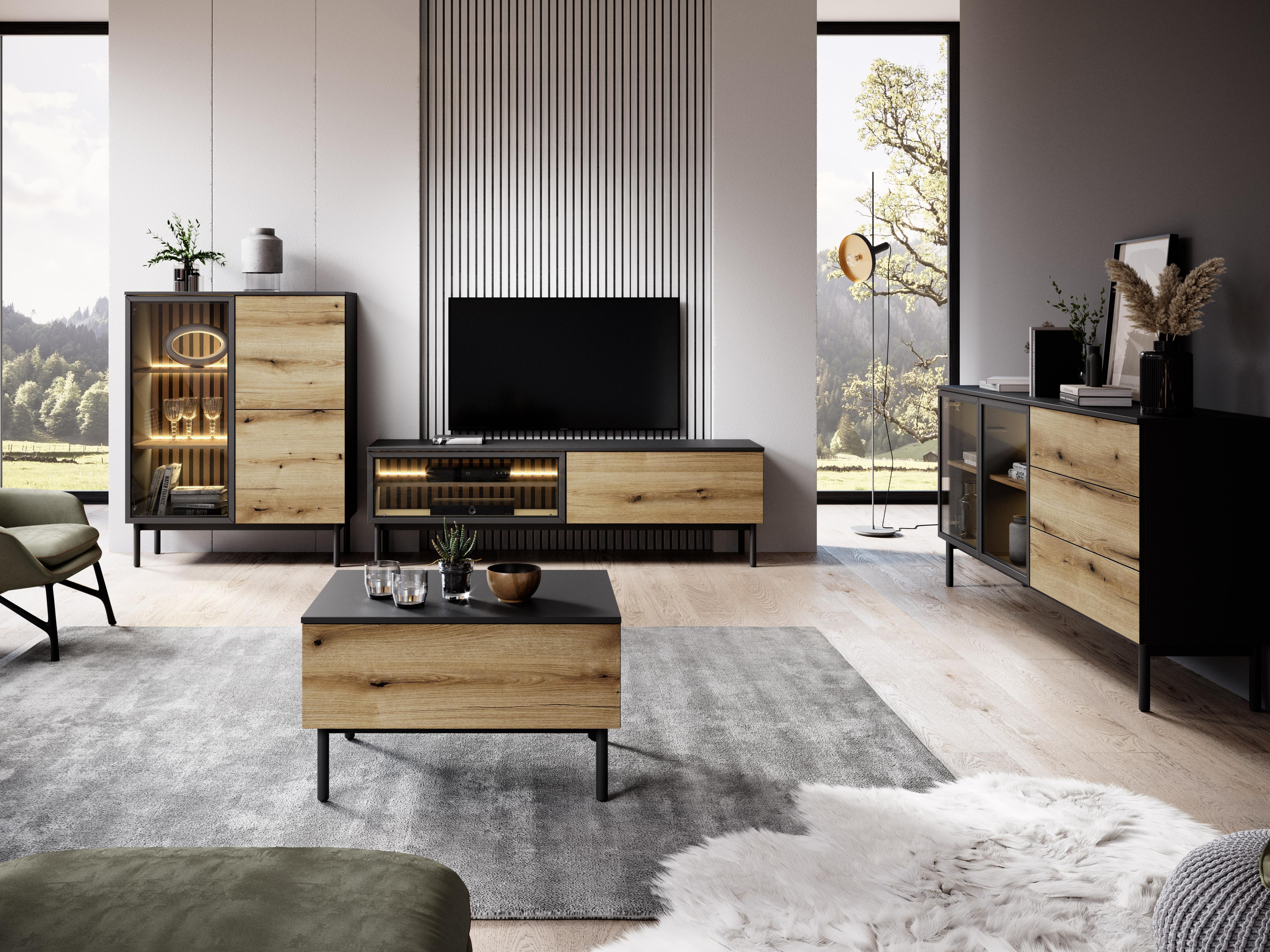 Mobilier living Lenge 1 (negru + stejar coast evoke) (cu iluminat)