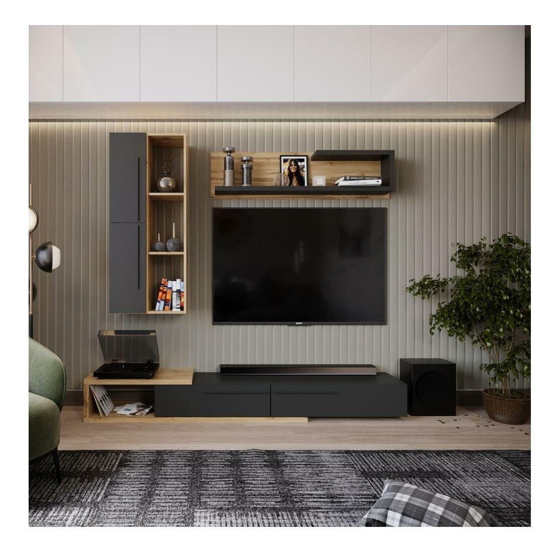 Mobilier living MALVADOS (stejar tacho + antracit)