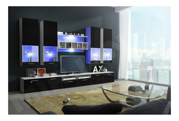 placă pal laminată; iluminat LED inclus în preț; Mânere și picioare din plastic.