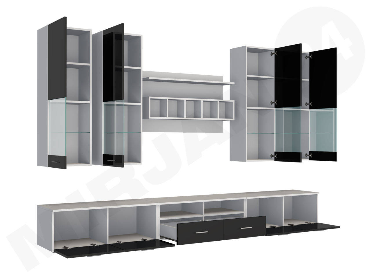 placă pal laminată; iluminat LED inclus în preț; Mânere și picioare din plastic.