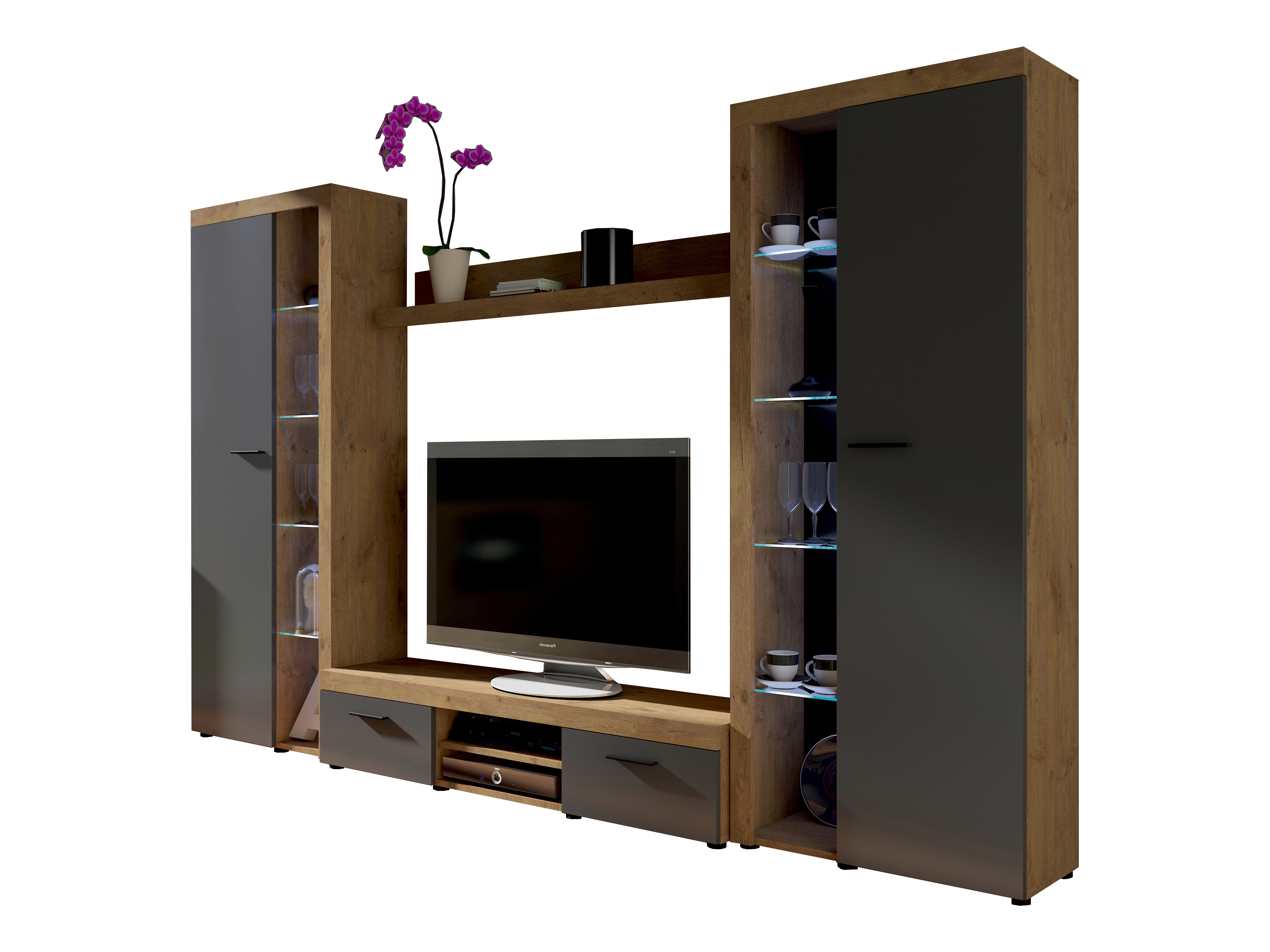 Mobilier living Rudby XL (stejar lefkas + grafit) (fără iluminat) *vânzare