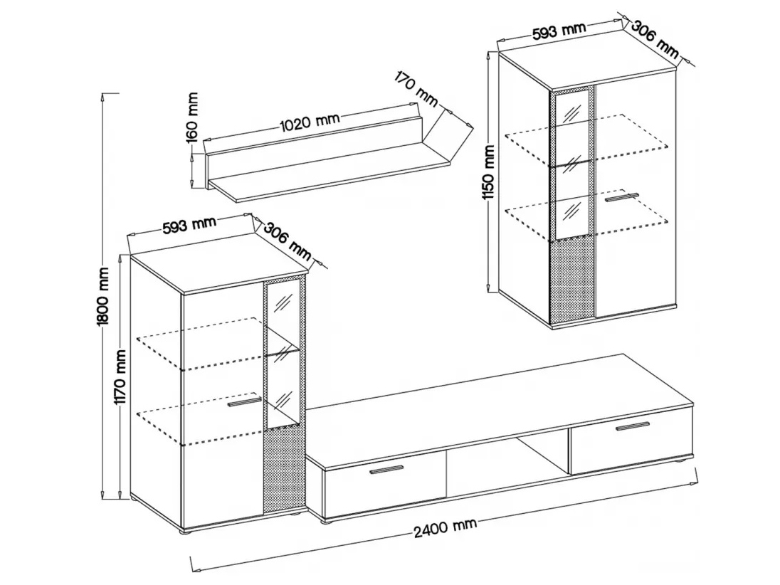 Mobilierul pentru living Saul, realizat în nuanța caldă și naturală de stejar lefkas, transformă orice încăpere într-un spațiu primitor și modern. Acest ansamblu impresionant, compus din corpuri suspendate și dulapuri practice, combină estetica contemporană cu funcționalitatea esențială pentru amenajarea unui living complet.