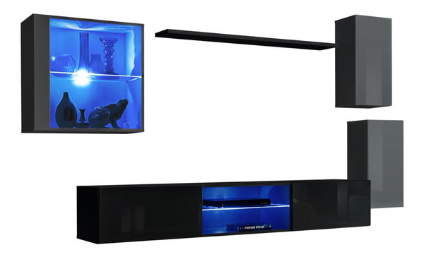 Mobilier living Shelly 27 GZ SW 23 (grafit mat + grafit lucios + negru mat + negru lucios)
