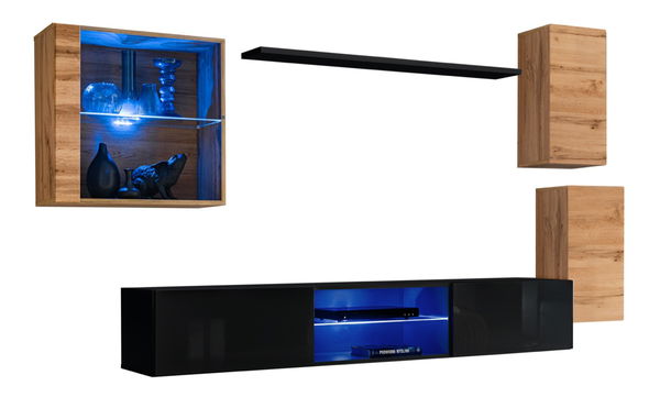 Mobilier living Shelly WTS SW 23 (stejar wotan + negru mat + negru lucios)