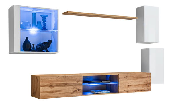 Mobilier living Shelly WWT SW 23 (alb mat + alb lucios + stejar wotan)