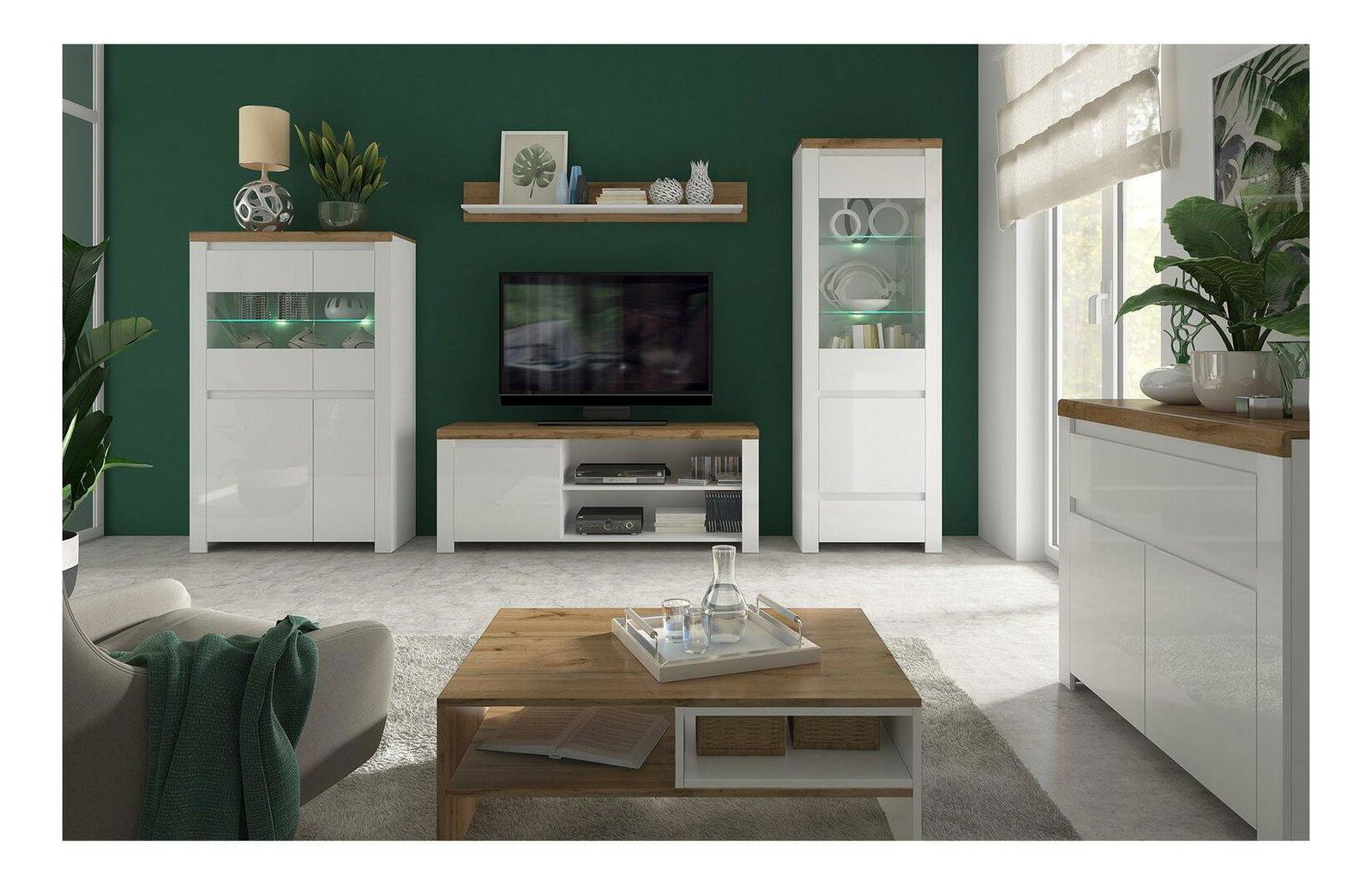 Comodă Vilgi 2D1S (alb ultra lucios + Stejar wotan)