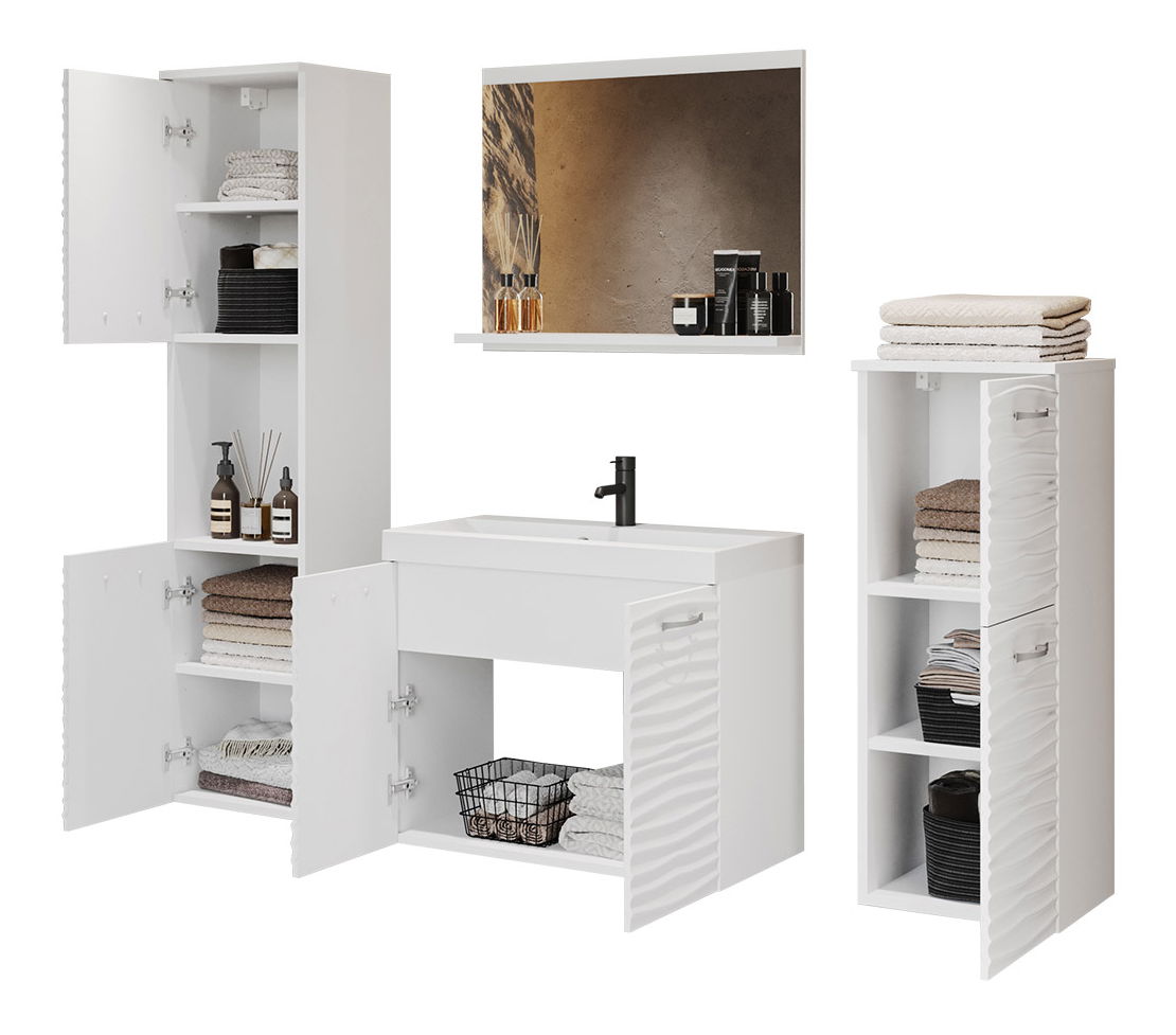 Mobilier pentru baie Megasa I MDF (alb + alb wave) *lichidare de stoc
