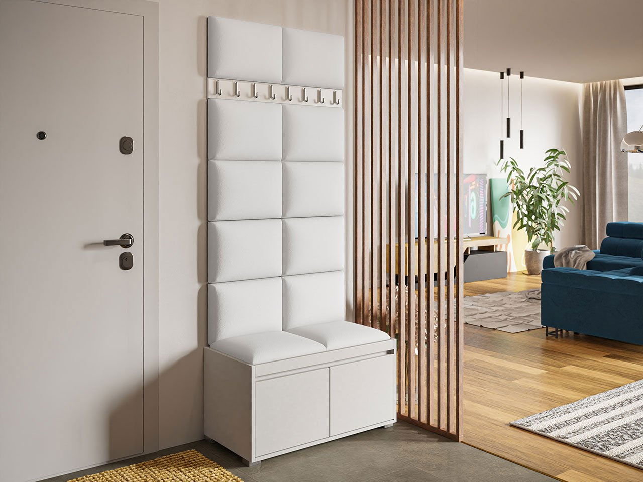 Mobilier pentru hol Kendora 80 (cu 12 buc panouri tapițate Pazara 40x30) (piele ecologică soft 017 (Alb)