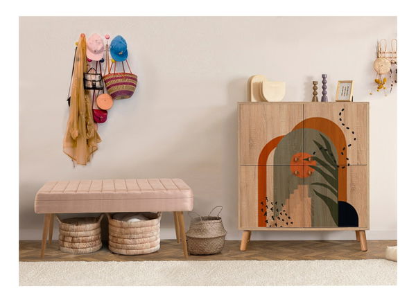 grosime: 18 mm, drevené picioare, pantofar: lățime: 95 cm, înălțime: 111 cm, adâncime: 36 cm, (1 buc) dimensiuni bancă: lățime: 105 cm, înălțime: 49 cm, adâncime: 40 cm