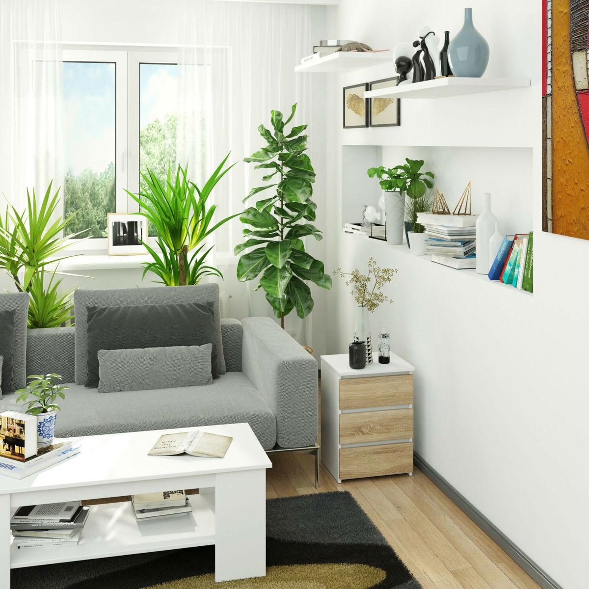 Noptieră Contragolpe (alb + stejar sonoma)