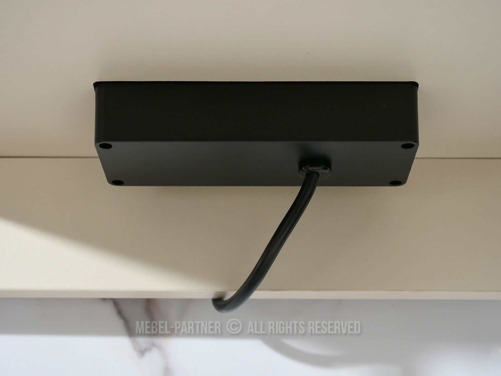 blat de masă dreptunghiular, cu raft, cu sertar, prize electrice încorporate, port USB