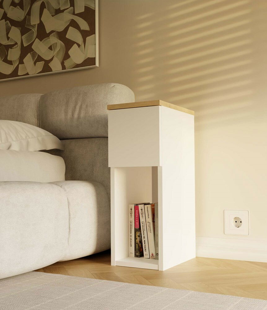 Noptieră Gustaban 1 (alb + stejar artisan)