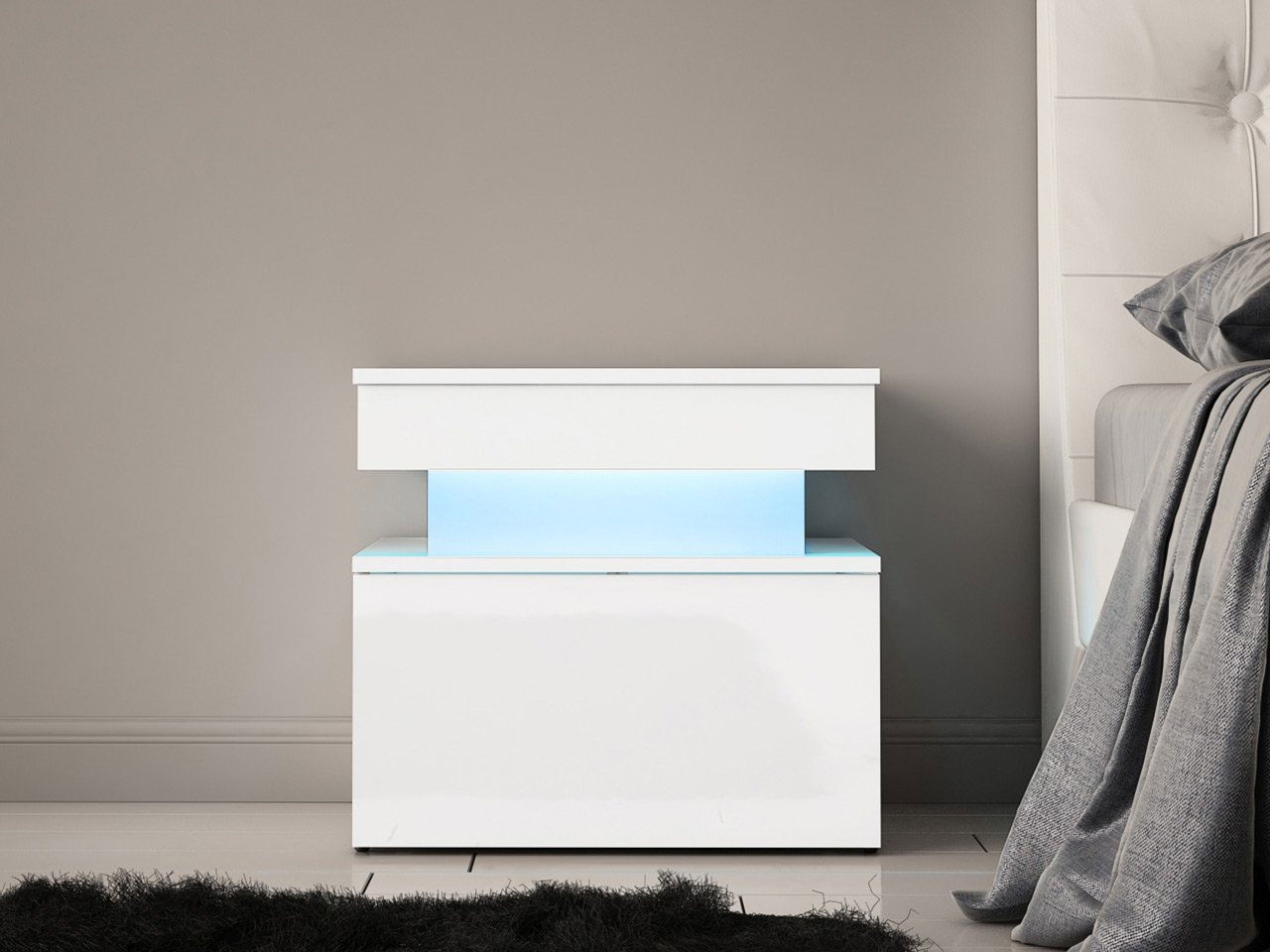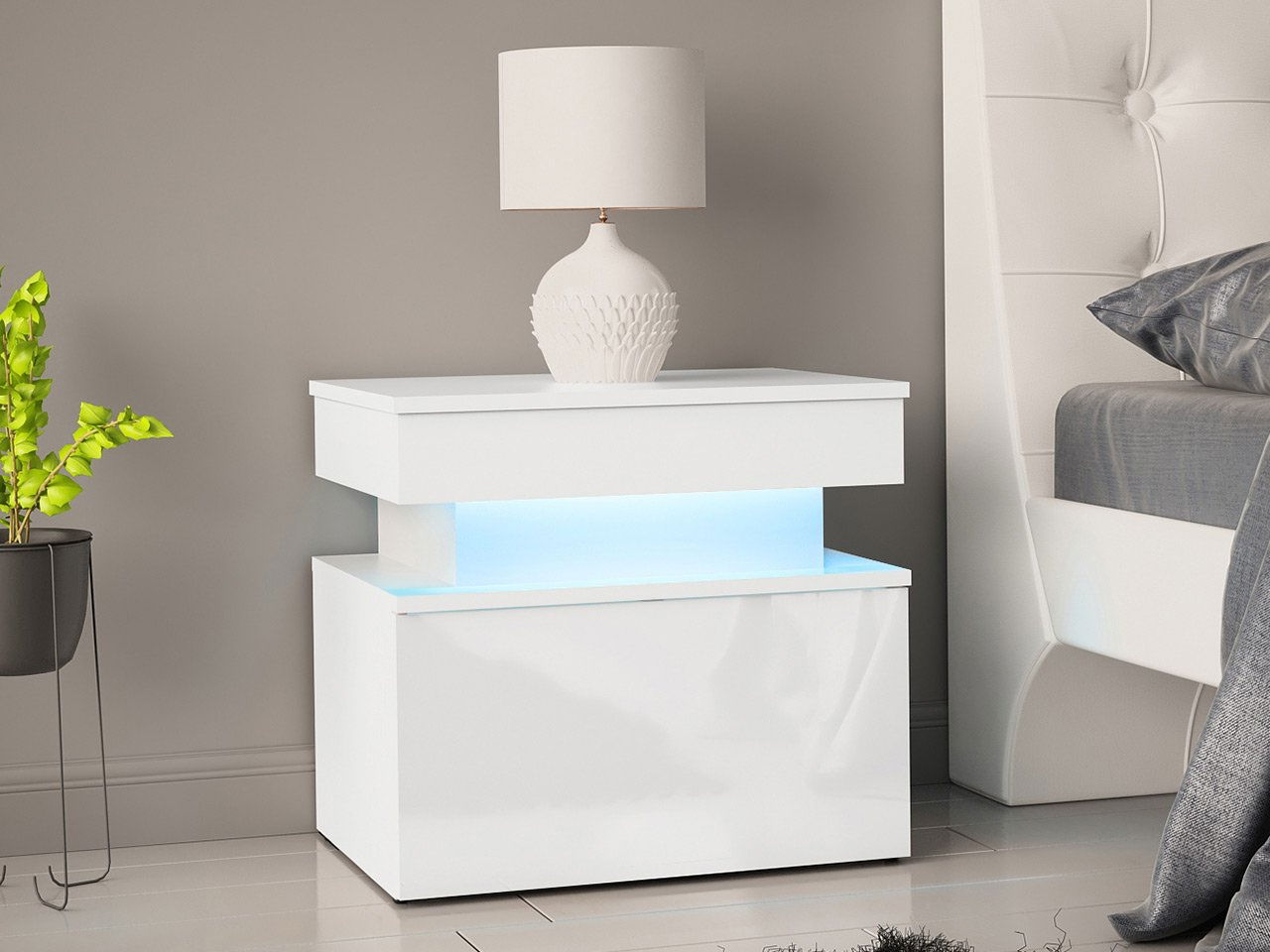 Noptieră Lesteralo 1S (Alb + lucios Alb) (cu iluminat LED albastru)