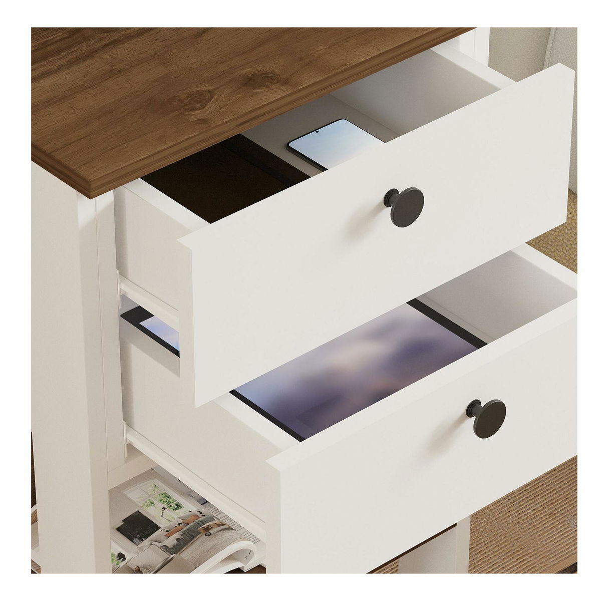 Noptieră Mekali 2 (alb + nuc)