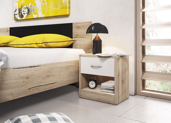 Noptieră Nanci 1S (stejar san remo + alb)
