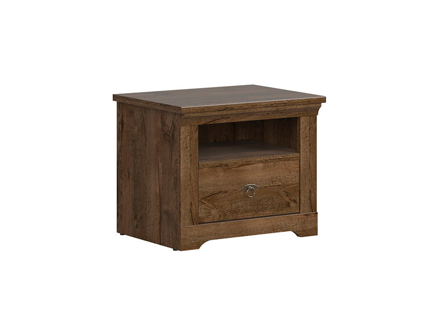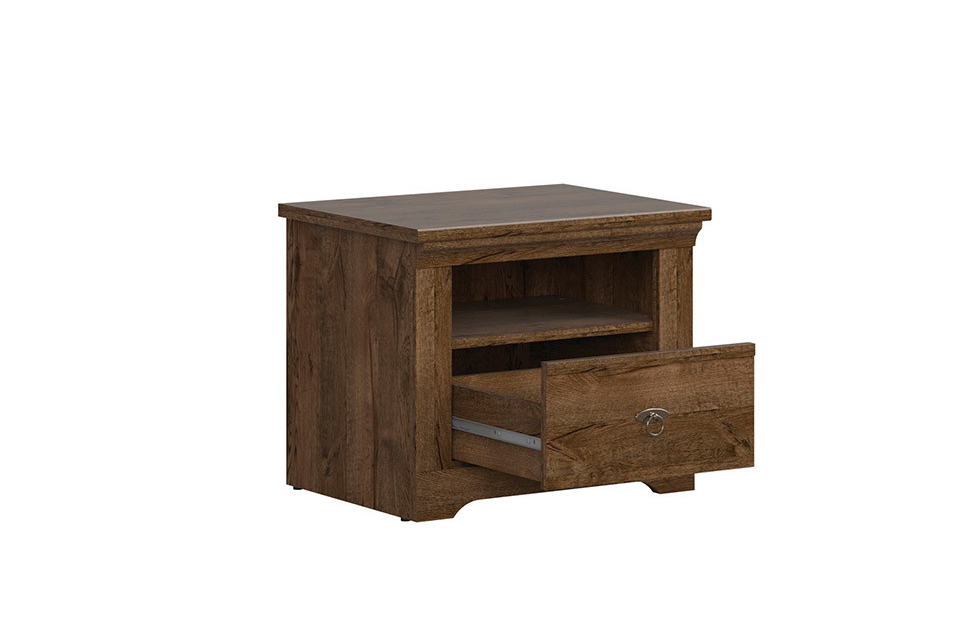 Noptieră elegantă care oferă un design mai tradițional. Designul pe versiunea color mai închisă le va oferi bucurie mai ales iubitorilor de mobilier antic. Masa oferă un raft deschis și un sertar pe șinele cu role.