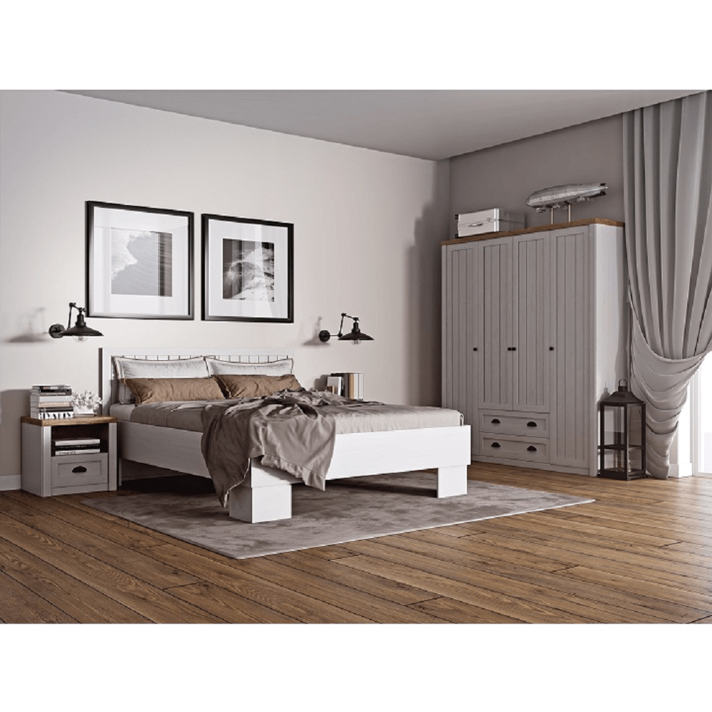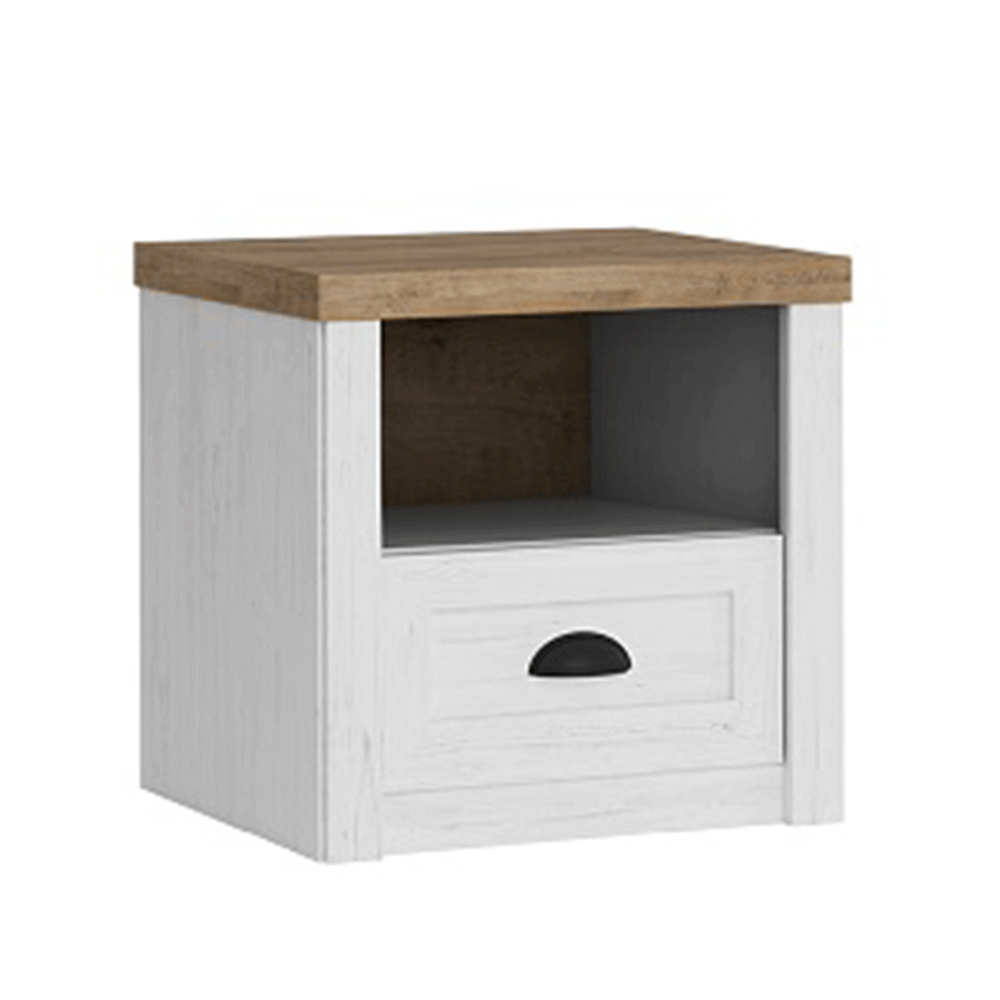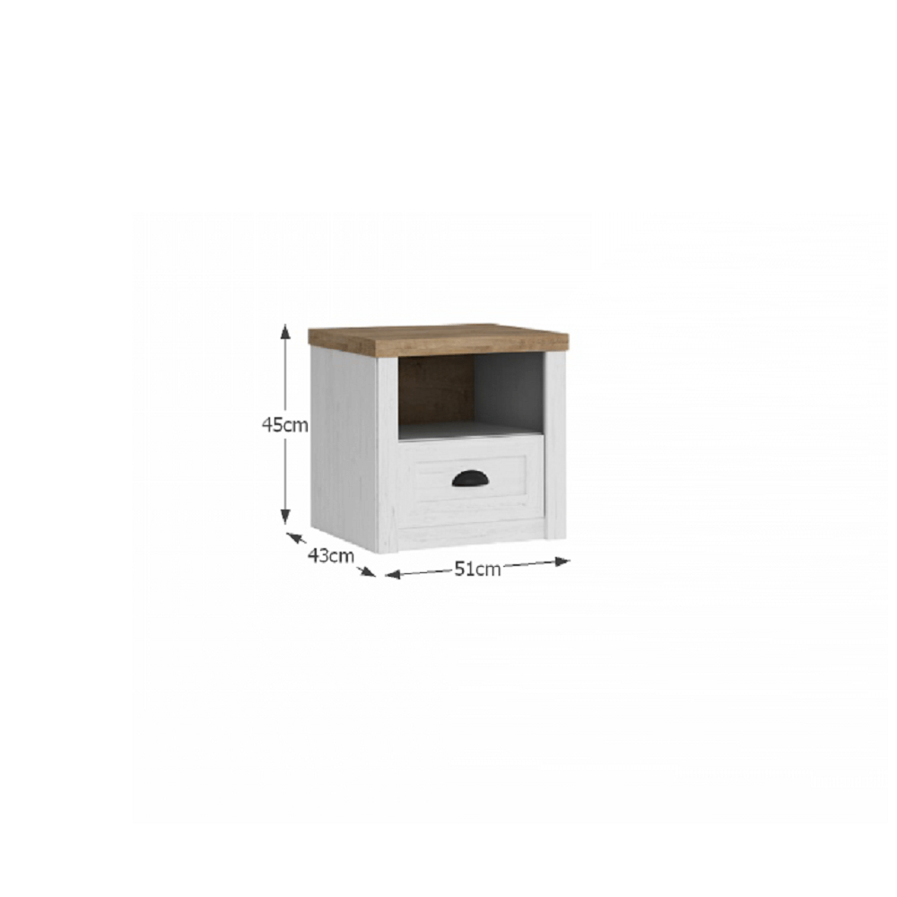 Noptiera în stilul provensal va fi un accesoriu potrivit lângă patul matrimonial Provance. Noptiera are un spațiu de depozitare deschis și un sertar.