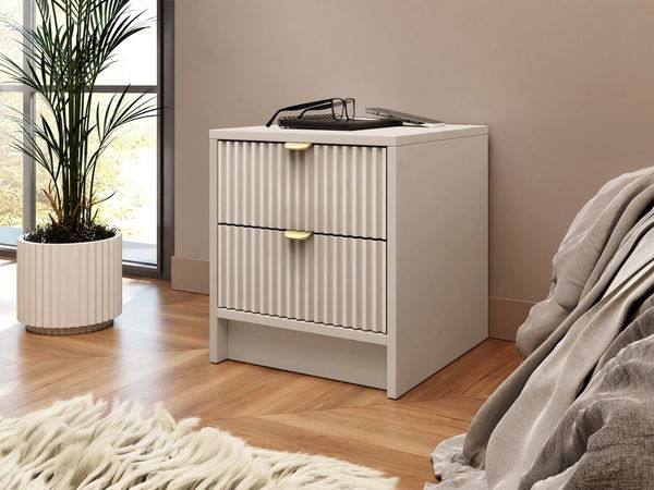 Noptiera Rozoma 2SZ în nuanță nisipiu bej este alegerea ideală pentru cei care apreciază funcționalitatea și rafinamentul într-un singur obiect de mobilier. Cu designul său modern ce adaugă un aer proaspăt oricărei dormitoare, această piesă include două sertare cu fețe rigate, ce sporesc atractivitatea și oferă spațiu generos pentru depozitare.
