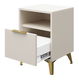 Noptiera Semprum 1SZ în nuanță nisipiu bej aduce un plus de funcționalitate și stil în orice dormitor modern. Cu un design compact și bine organizat, această piesă de mobilier este ideală pentru a păstra la îndemână cărți, ochelari sau alte obiecte personale, oferind în același timp un spațiu generos în sertarul cu mâner metalic auriu.