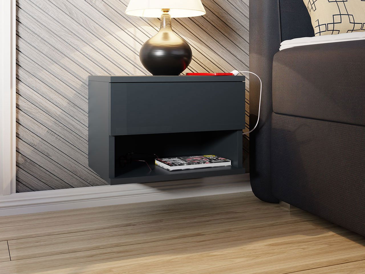 Noptiera Abercja, datorită aspectului său minimalist și a culorilor disponibile, se încadrează perfect în interioarele moderne. Noptiera Abercja poate fi plasată de perete. Picioarele lipsă ușurează accesul sub noptieră pentru curățenie și măresc vizual spațiul. Noptiera conține un sertar extensibil și un raft deschis. Suprafața blatului este de 45 cm x 32 cm.