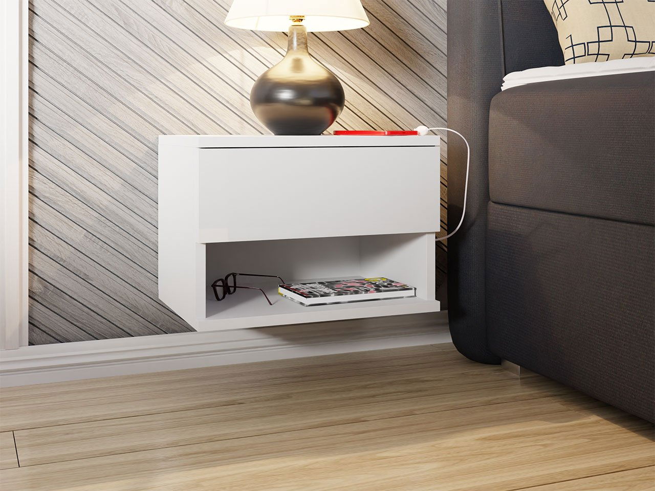 Noptieră suspendată Amarilda (Alb + Alb lucios)