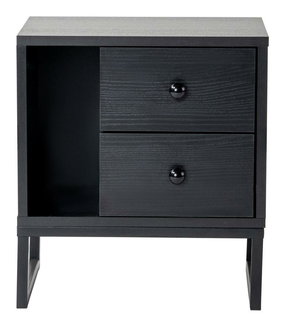 Noptierele metalice sau din lemn pe versiune color negru sunt potrivite în interioare cu accesorii distinctive. Metalul poate fi găsit în mare parte pe mânere, bază sau alte elemente de design. În cadrul metalic poate fi introdusă o placă de lemn sau sticlă. Noptierele tapițate combinate cu lemn devin din ce in ce mai populare. Desi întreținerea acestora este mai pretentioasa, designul lor neconvențional poate depăși acest dezavantaj.