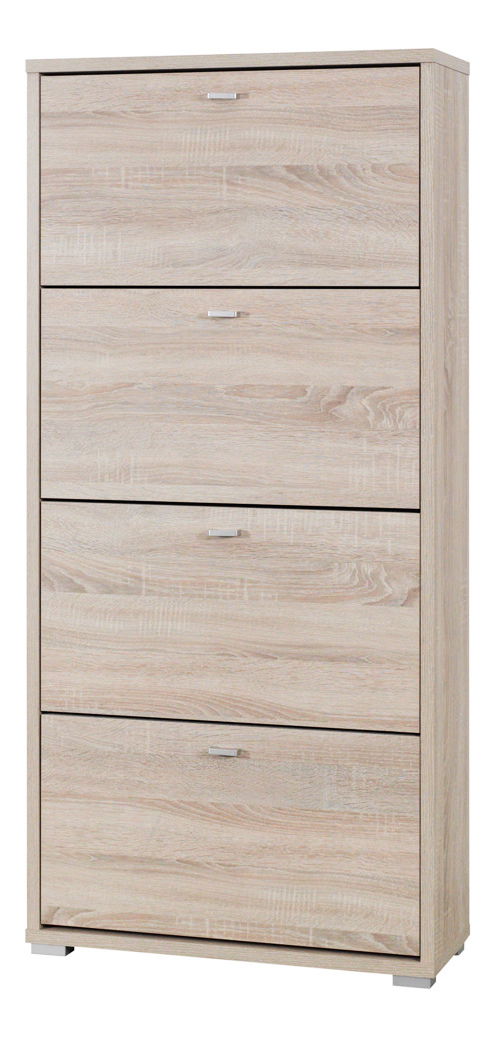 AfișeazăPantofar Attical cu patru dulapuri oferă spațiu pentru aproximativ 8-12 perechi de pantofi, desigur depinde de mărimea acestora. Datorită designului său este potrivit pentru hol.