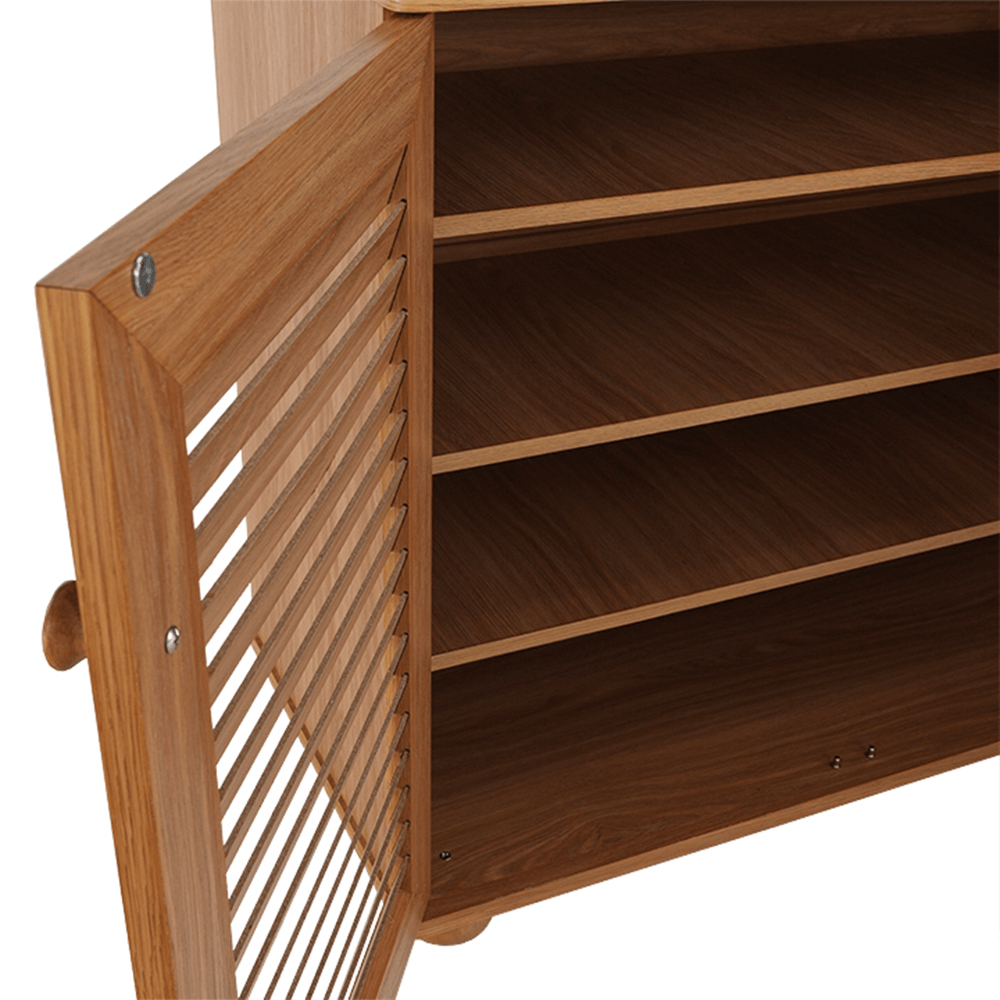 Pantofar sau dulap pentru pantofi cu două uși. Versiunea color de natural. Materialul este MDF laminat.