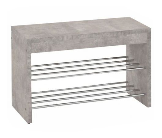Pantofar, cu utilizare multifuncțională. Conține două rafturi metalice pentru pantofi și oferă deasemenea loc de ședere practic.